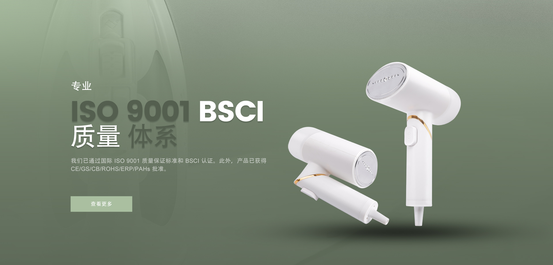 我們是一家專(zhuān)業(yè)的制造商和出口商,提供設(shè)計(jì)、開(kāi)發(fā)、生產(chǎn)、銷(xiāo)售和相關(guān)服務(wù),產(chǎn)品包括電熨斗、手持式蒸汽掛燙機(jī)、蒸汽刷等。 美威工廠占地4000平方米,擁有雄厚的技術(shù)力量和先進(jìn)的設(shè)備,可以滿足您對(duì)生產(chǎn)能力和質(zhì)量的各個(gè)方面的要求,目前已通過(guò)國(guó)際 ISO 9001 質(zhì)量保證標(biāo)準(zhǔn)和 BSCI 認(rèn)證。此外,產(chǎn)品獲得 CE/GS/CB/ROHS/ERP/PAHs 批準(zhǔn),并遠(yuǎn)銷(xiāo)歐洲、中東、俄羅斯、亞洲和南美等。